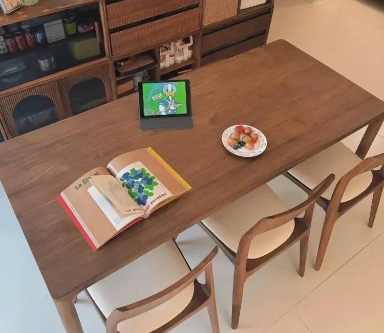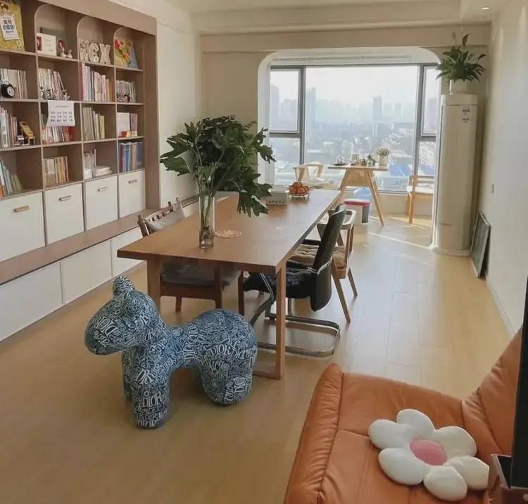 餐桌代替茶几:客厅从“摆设区”变“全家互动场”,功能多到离谱“客厅中央必须放置茶几”,这是许多人根深蒂固的装修观念。然而年轻人发现:传统茶几除了堆放遥控器、落灰之外,几乎毫无用处!于是他们大胆舍弃茶几,将长餐桌搬进客厅,使客、餐、书房的功能合而为一。