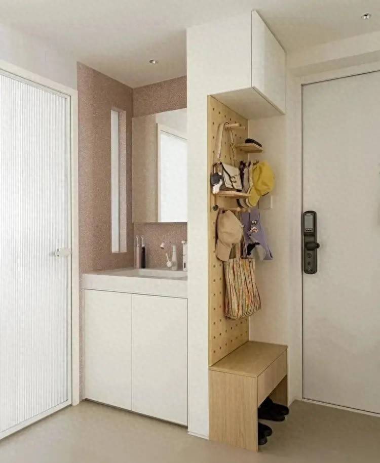 洗手台搬出卫生间:玄关秒变“多功能驿站”,小户型动线大升级在传统装修中,洗手台似乎被固定在了卫生间——小户型的卫生间本就狭小,洗手、如厕、洗澡挤在一起,早高峰时争抢使用,更别提实现干湿分离了。年轻人偏要反其道而行之:将洗手台移至玄关,瞬间让进门后的动线变得顺畅无比。